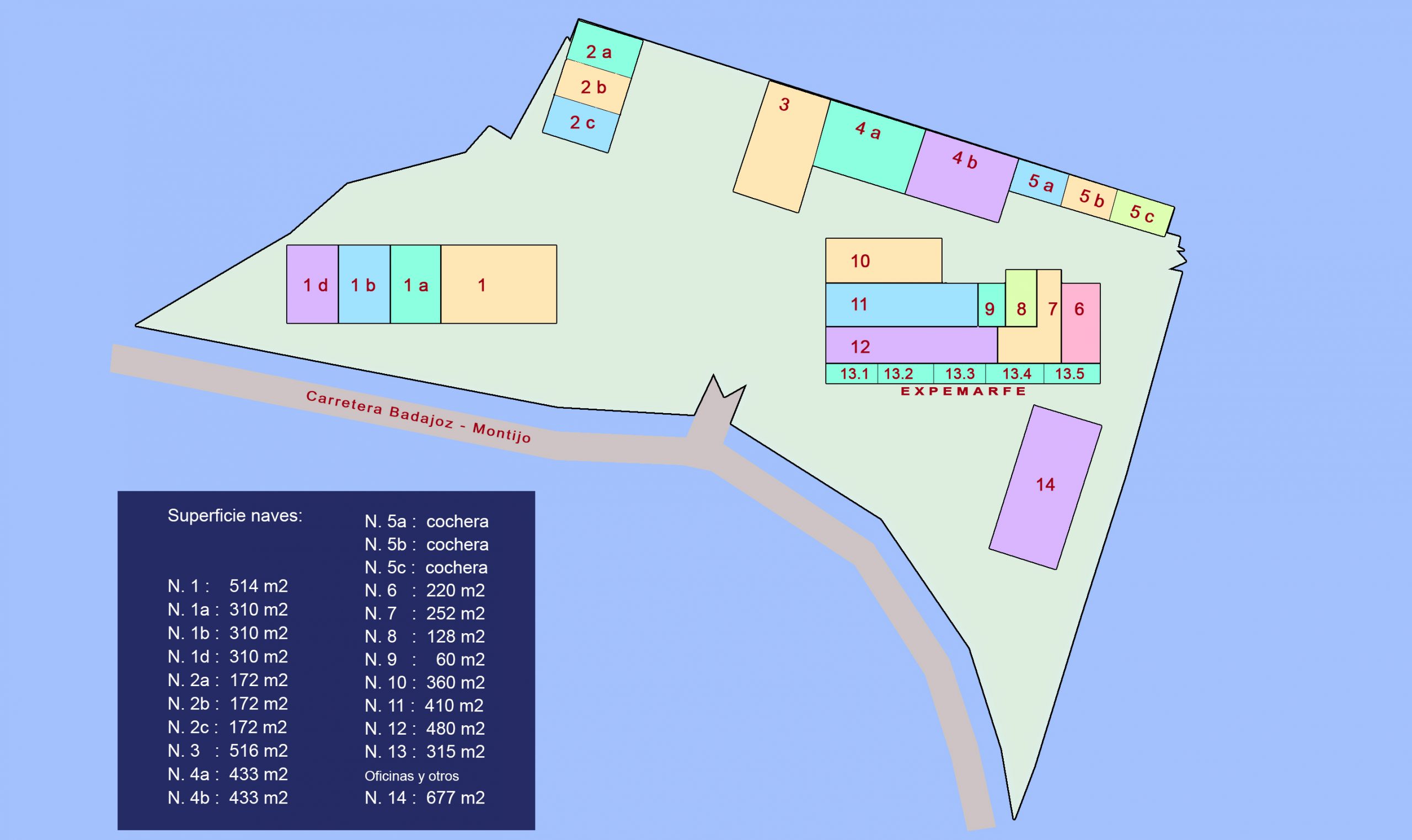 Nuestras naves se encuentran ubicadas en una excelente situación, a 5 minutos del centro urbano de Badajoz y de la frontera con Portugal y a 100 metros del acceso a la Autovía Madrid-Lisboa y la carretera de Cáceres.